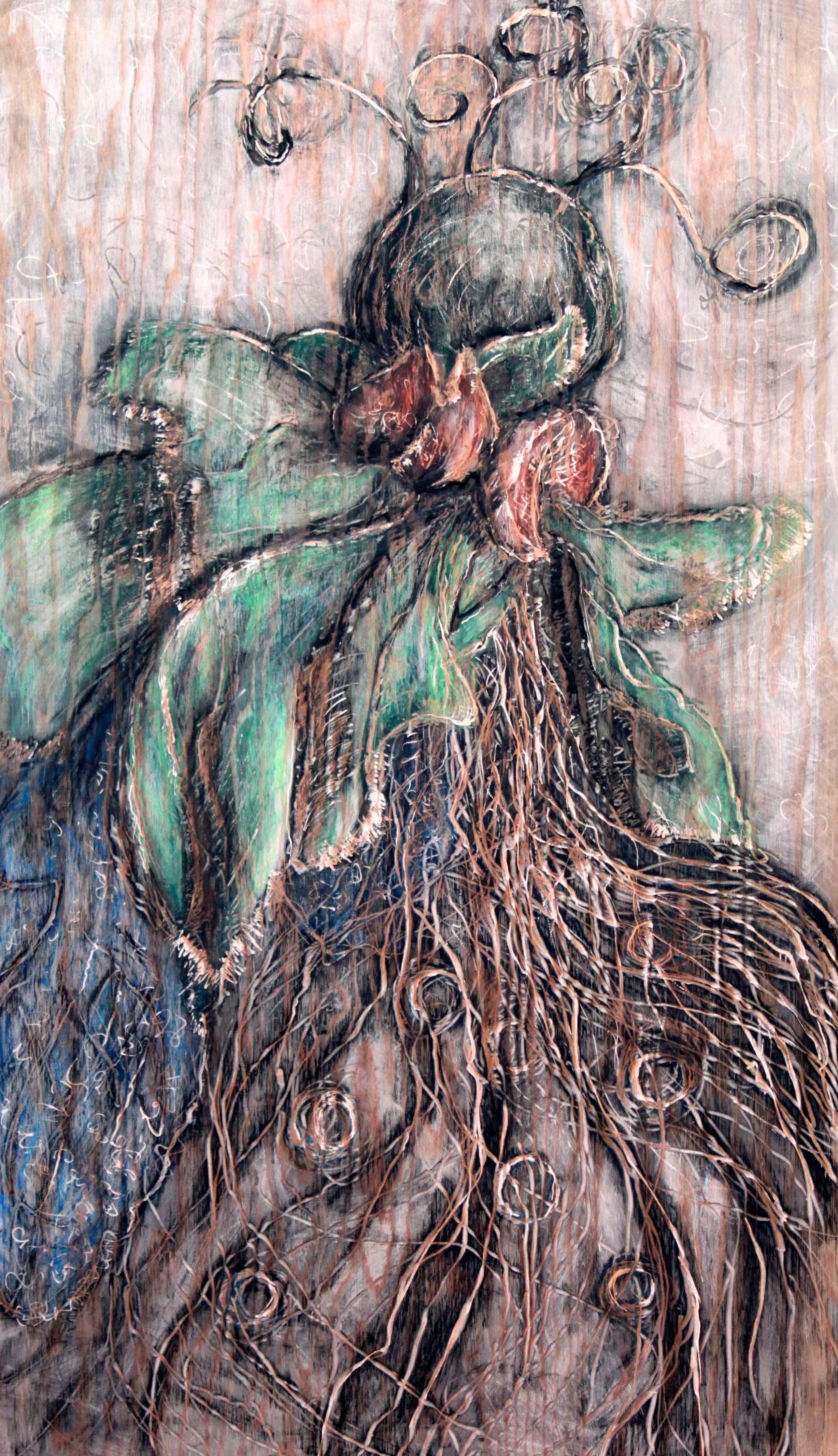 Fetish, drill on wood panel, 23 x 35 inches, 2012