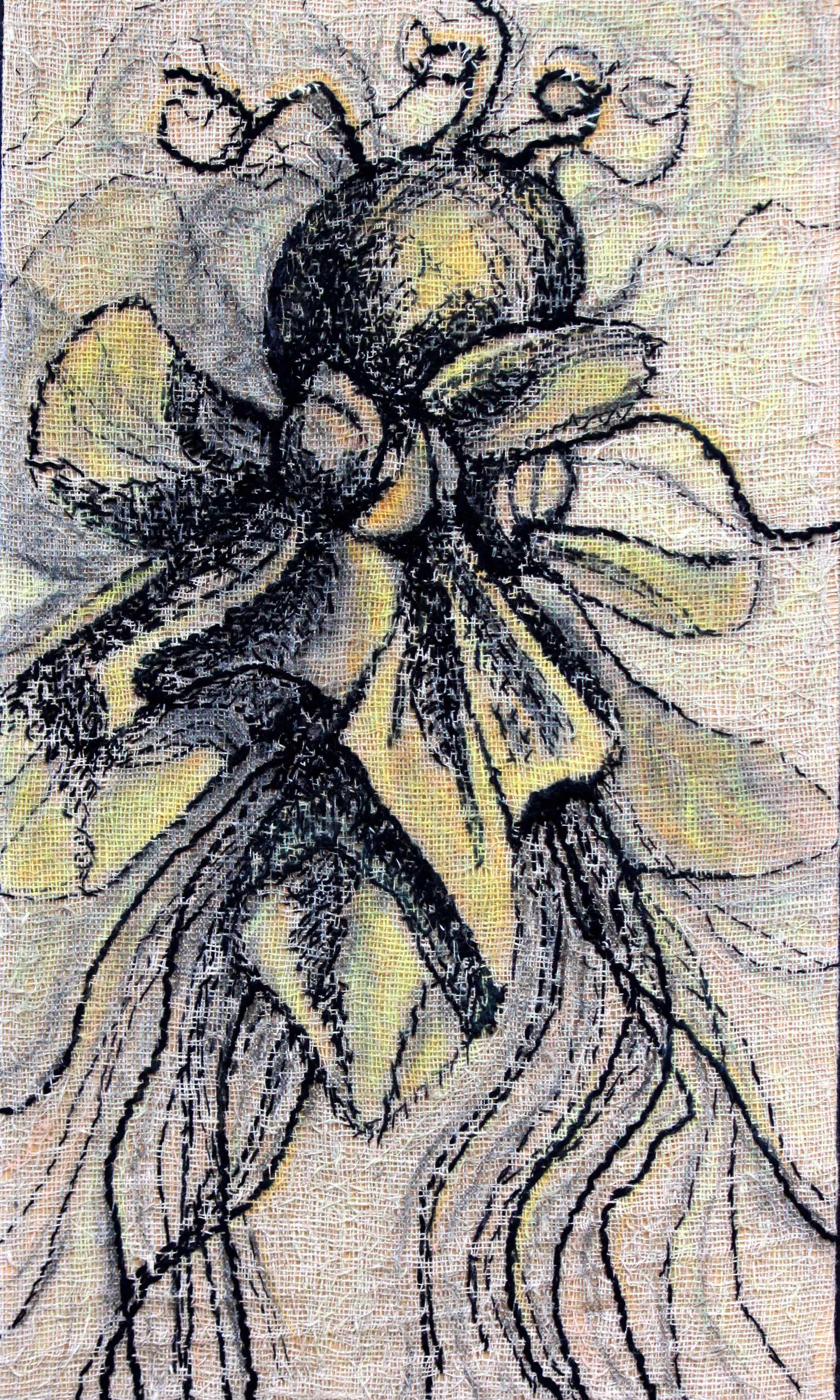 Bumblebee, yarn on burlap and wood panel, 23 x 35 inches, 2012