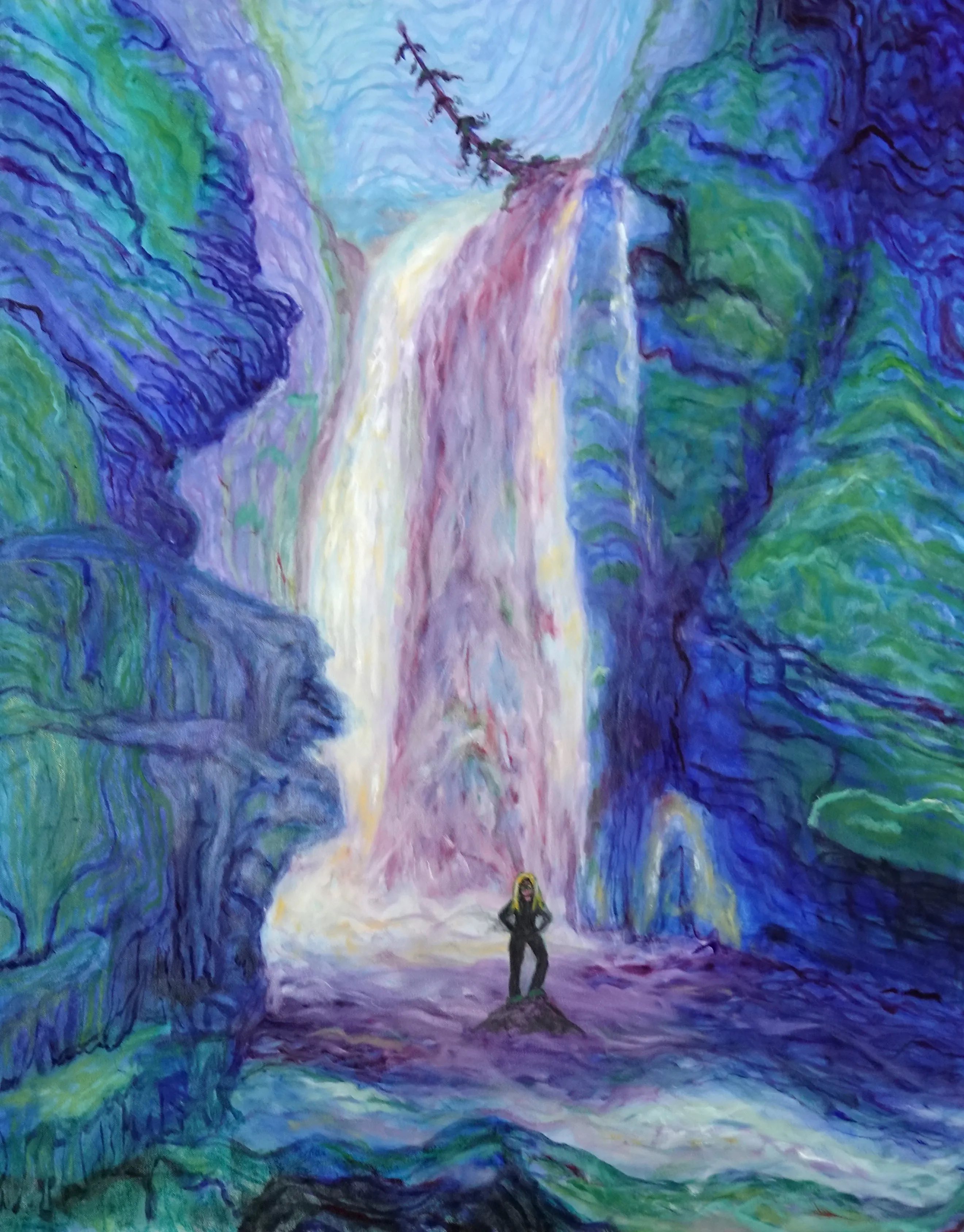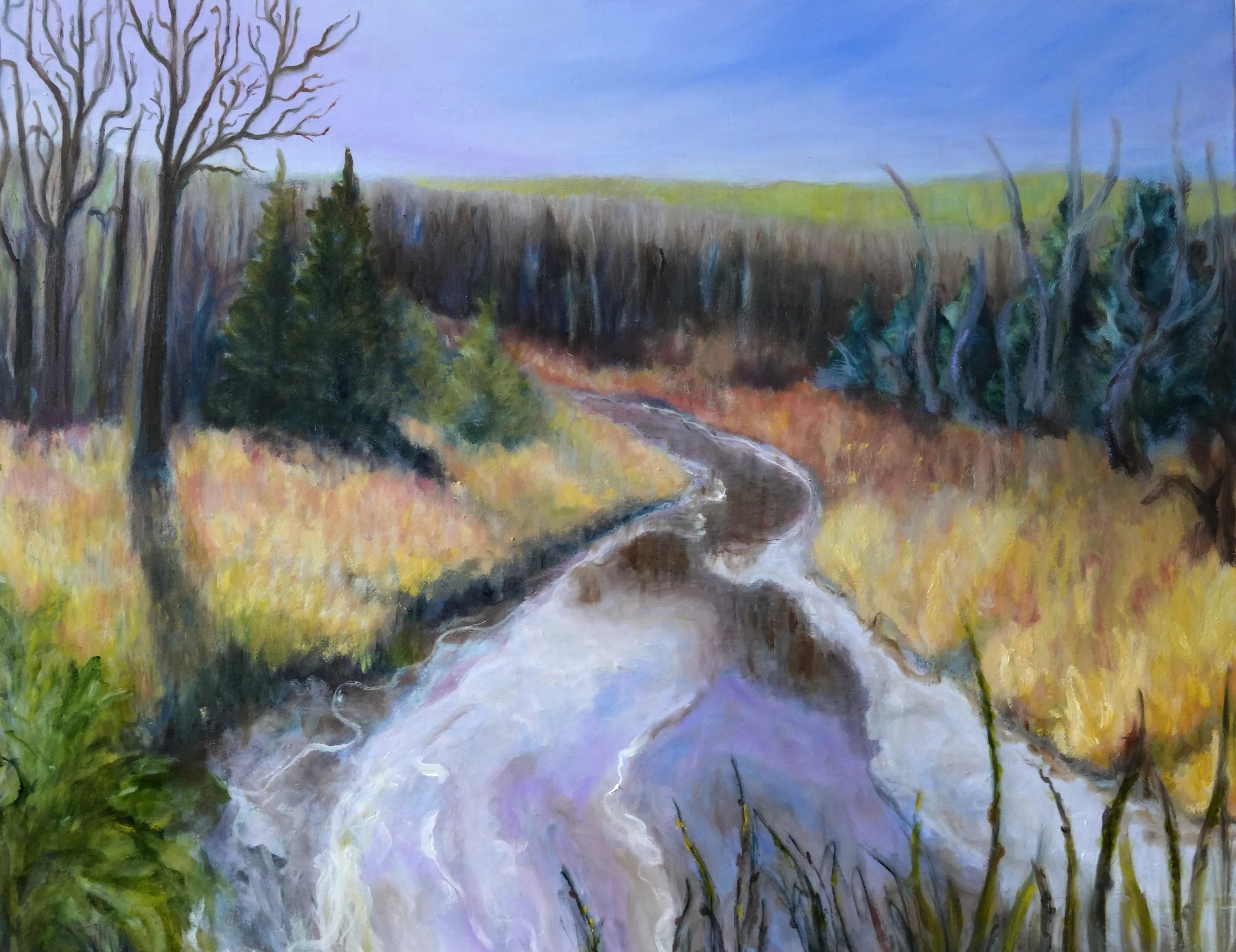 River valley, acrylic and oil on canvas, 35 x 27 inches, 2021